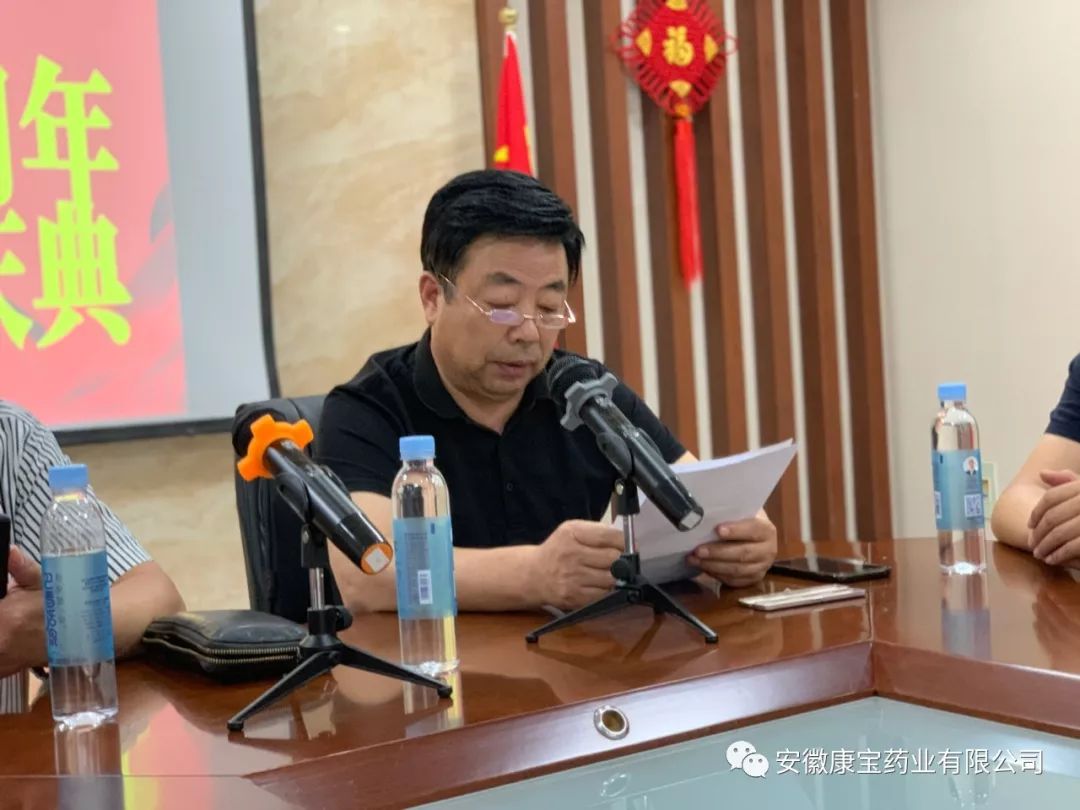 2019年9月10日下午,淮南東方醫(yī)院集團(tuán)全資子公司康寶藥業(yè)在公司會議中心舉行隆重而簡樸的五周年慶典活動。東方醫(yī)院集團(tuán)黨委書記、董事長江鴻方,集團(tuán)董事、康寶藥業(yè)董事長朱興林出席了慶典。慶典由朱興林書記主持。