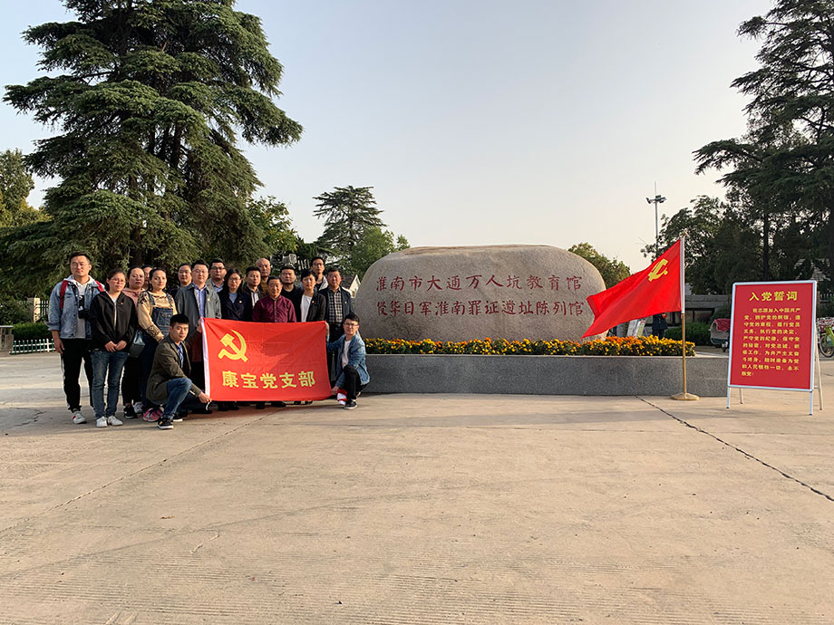 2019年10月29日下午,康寶黨支部開展“不忘初心,牢記使命”主題的教育工作,組織黨員前往淮南市“大通萬人坑教育館”接受愛國主義教育。參觀前,在紀(jì)念館門口康寶黨支部書記段松穎同志帶領(lǐng)全體黨員對著黨旗,重溫入黨誓詞,堅定不忘初心,牢記使命的理想信念。