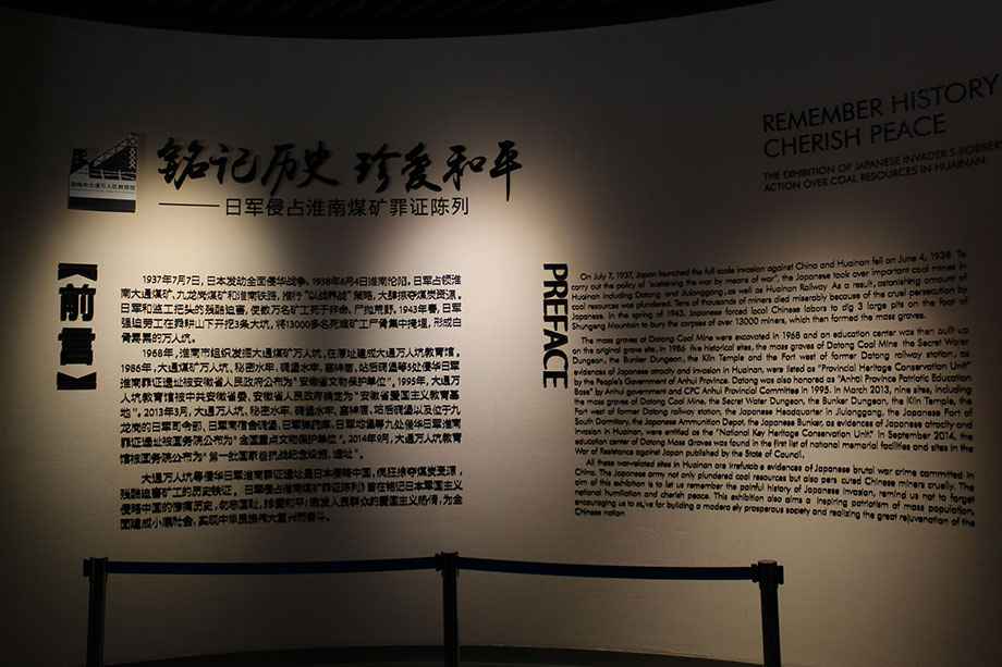 大通萬人坑教育館位于淮南市大通礦南,始建于1968年,全館占地面積約31000平方米,現(xiàn)展廳依次有教育館概述、日寇侵占大通期間布局沙盤、礦工生產(chǎn)生活用品用具、礦工上下工流程泥塑、礦工作業(yè)場景、日寇殘害礦工刑具、大病房概況、三條白骨大坑、秘密水牢等。展廳通過107塊陳展圖板和各類實(shí)物展品100余件,形象的再現(xiàn)了日本侵略者的種種暴行和勞工的悲慘境遇。