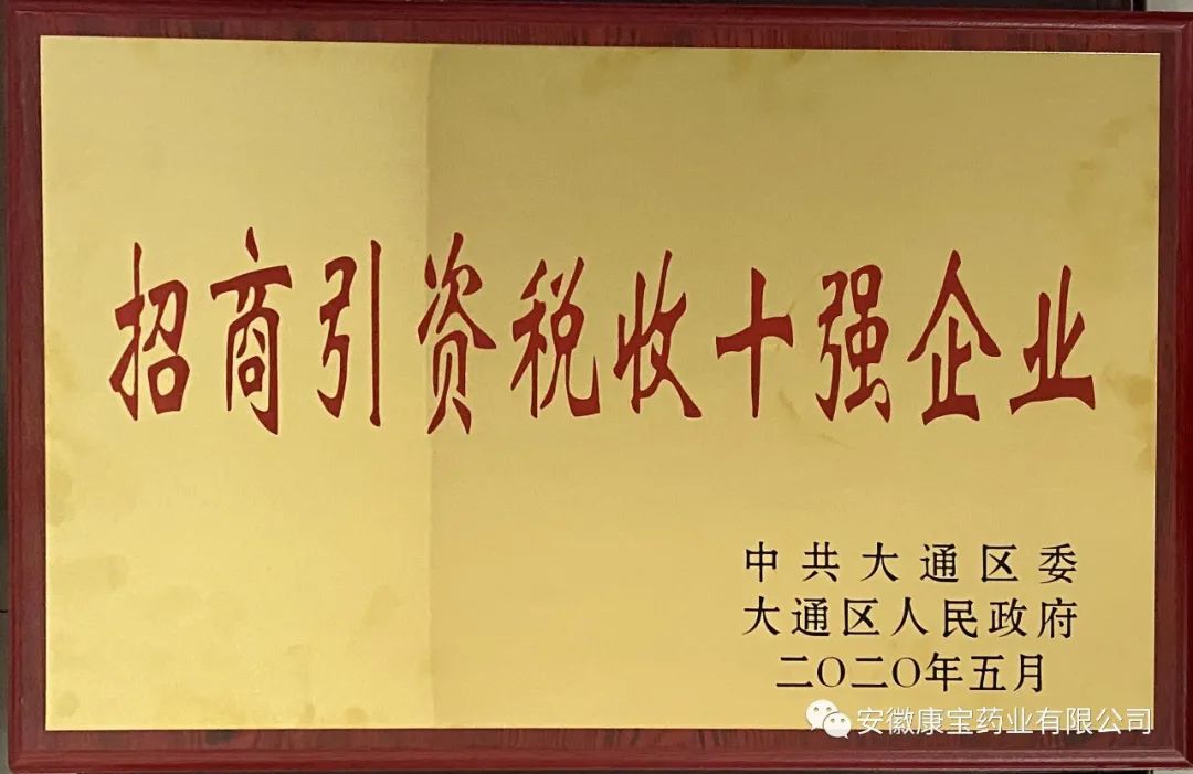 【請您關注】康寶藥業榮獲“淮南市大通區招商引資稅收十強企業”稱號