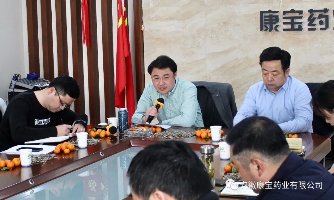 2021年2月23日下午,淮南東方醫院集團在康寶藥業召開藥材專題會。醫院集團總經理江永強、康寶董事長朱興林、各醫院藥材科分管院長及科長、康寶藥業經理及部長參加了會議。